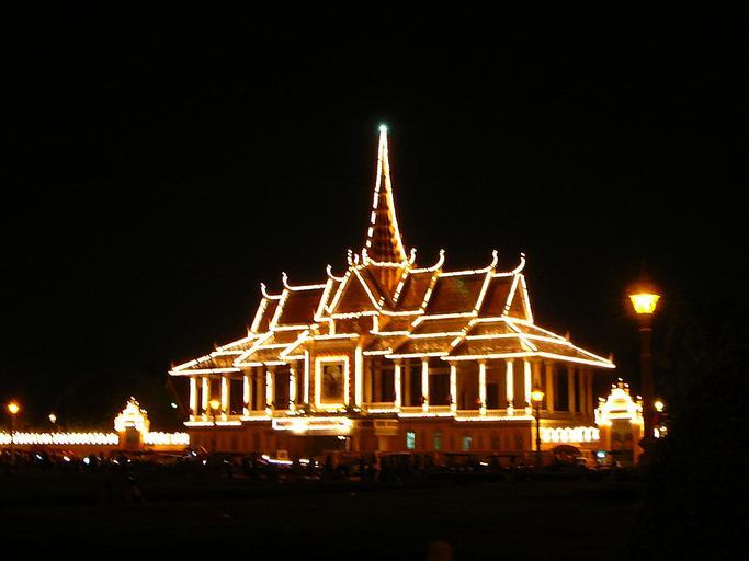 Keywords: Phnom Penh Royal Palace by Night.JPG Cambodia Royal Palace Phnom Penh by Night Own 2007-11-29 Anjacl GNU Preah Thineang Chan Chhaya