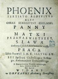 | Keywords: Phoenix tertiato redivivus 1684.jpg pl Jakub Susza Phoenix tertiato redivivus albo obraz starożytny chełmski Panny i Matki Przenaświętszej Zamość 1684 karta tytułowa 2012-12-13 17 06 26 http //muzeum-zamojskie pl/stdruk/karta22 php id 34 author PD-Art Uploaded with UploadWizard Title pages from Poland Old Polish Books 1684 books Poland in the 17th century |