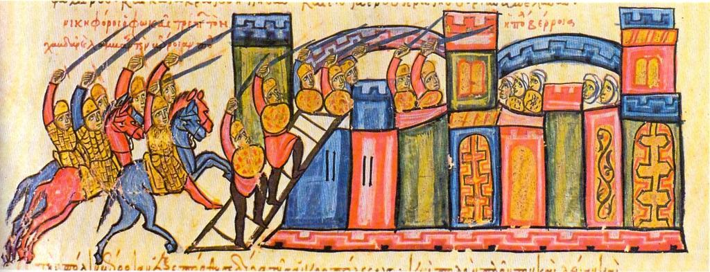 | Keywords: Phokas captures Halep 962.jpg en The Byzantine army under Nikephoros Phokas captures Halep Berrhoea Syria in February 963 el Κατάληψη του Χαλε ίου αρχαία Βέρροια της Συρίας α ό τον βυζαντινό στρατό του ικηφόρου Φωκά Φεβρουάριος 963 en Skylitzes chronicle National Library Madrid el Χρονικό Ι Σκυλίτζη Εθνική Βιβλιοθήκη αδρίτη Scanned from Ιστορία του Ελληνικού Έθνους Εκδοτική Αθηνών Αθήνα 1980 Τόμος Η' σελ 111 Άγνωστος/Unknown 12th-13th centuries <gallery>Capture of Berroia by the Byzantines png Better version</gallery> PD-old Madrid Skylitzes Nikephoros II Phokas History of Aleppo Battles involving the Byzantine Empire Byzantine Arab Wars |