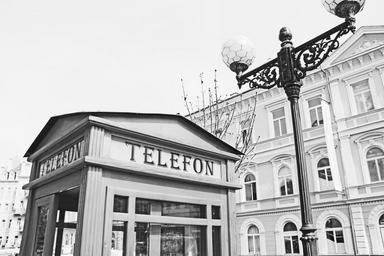 Keywords: phone phone booth lantern old black and white spa karlovy vary