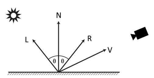 Keywords: Phong1.png en Illustration of Phong illumination model cs Schéma Phongova osvětlovacího modelu own Tikiri 2012-10-25 Transparent background