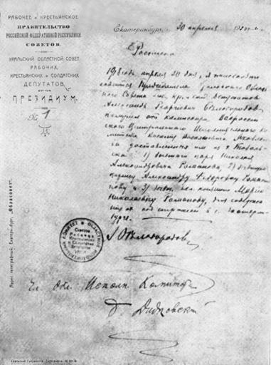 | Keywords: Photo 013 - Receipt issued by Commissar Yakovlev.jpg ru Фото 13 Расписка выданная комисса у Яковлеву п и заде жании в Екате инбу ге Госуда я Госуда ыни и Великой Княжны а ии иколаевны en Photo 13 The receipt issued by Commissar Yakovlev during detention of the Emperor the Empress and Grand Duchess Maria Nikolayevna in Yekaterinburg http //gatchina3000 ru/literatura/sokolov_n_a/murder_imperial_family58 htm http //gatchina3000 ru/literatura/sokolov_n_a/murder_imperial_family013 jpg direct link http //fund-memory-romanov me-ga ru/page/ub/ http //fund-memory-romanov me-ga ru/media/PhotoSokolova/Фото 20 2013 20Расписка 20А Г 20Белобо одова jpg direct link Vasily Yakovlev 1918-04-30 PD-Russia Original upload log ru wikipedia Murder+imperial+family+doc-1- jpg wikitable - 2009-11-30 03 05 359×482× 91974 bytes Zoe Leon <nowiki> Изоб ажение Расписка Белобо одова в пе едаче ему ца ской семьи Описание фотог афия Источник http //gatchina3000 ru/literatura/sokolov_n_a/murder_imperia</nowiki> Sokolov's investigation |