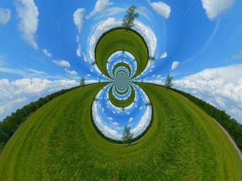 Keywords: photo filter meadow sky landscape tree experiment photoshop filter clouds idyll rest