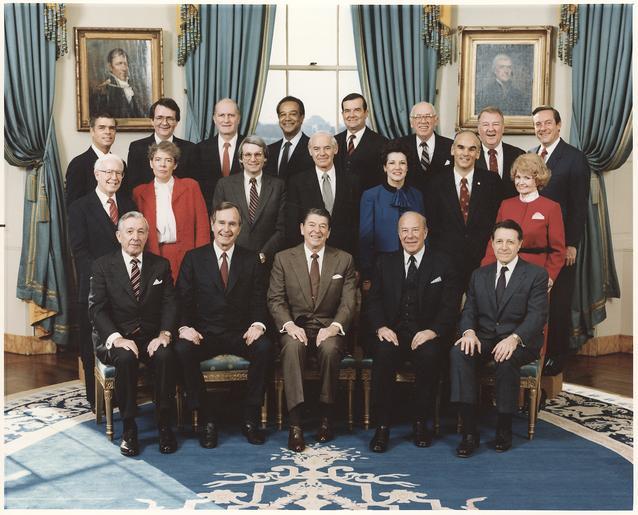Keywords: Photograph of 1984 Cabinet - Class Photo - NARA - 198545.tif Scope and content General notes 198545 Local identifier President 1981-1989 Reagan White House Photographic Office 1981 - 1989 Ronald Reagan Library NLRR 40 Presidential Drive Simi Valley CA 93065-0600 date 1984 01 20 - 1984 01 20 Record group Collection RR-WHPO White House Photographic Collection 01/20/1981 - 01/20/1989 Record group ARC 1192 Reagan White House Photographs compiled 01/20/1981 - 01/20/1989 documenting the period 1915 - 01/20/1989 Series ARC 198505 File unit File unit ARC Variant control numbers NAIL Control Number NLS-WHPO-A-C19565 5 yes Other versions <gallery> File Photograph_of_1984_Cabinet_-_Class_Photo_-_NARA_-_198545 tif tif File Photograph_of_1984_Cabinet_-_Class_Photo_-_NARA_-_198545 jpg jpg </gallery> NARA-cooperation PD-USGov United States Cabinets 1984 NARA TIF images with categorized JPGs |