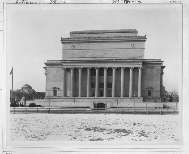 Keywords: nara:arcid=7820511 u.s. national archives usnationalarchives national archives building nationalarchivesbuilding blackandwhite monochrome outdoor photo border black and white Original Caption: Photograph of the 7th Street Side of the National Archives Building, 12/25/1935 U.S. National Archives’ Local Identifier: 64-NA-13 From: Series : Historic Photograph File of National Archives Events and Personnel, compiled 1935 - 1975, documenting the period ca. 1928 - 1975 Created By: General Services Administration. National Archives and Records Service. Office of Educational Programs. Education Division. (? - 04/01/1985) Production Date: 12/25/1935 Persistent URL: research.archives.gov/description/7820511 Repository: National Archives at College Park - Still Pictures (RD-DC-S), National Archives at College Park For information about ordering reproductions of photographs held by the Still Picture Unit, visit: www.archives.gov/research/order/still-pictures.html Reproductions may be ordered via an independent vendor. NARA maintains a list of vendors at www.archives.gov/research/order/vendors-photos-maps-dc.html Original Caption: Photograph of the 7th Street Side of the National Archives Building, 12/25/1935 U.S. National Archives’ Local Identifier: 64-NA-13 From: Series : Historic Photograph File of National Archives Events and Personnel, compiled 1935 - 1975, documenting the period ca. 1928 - 1975 Created By: General Services Administration. National Archives and Records Service. Office of Educational Programs. Education Division. (? - 04/01/1985) Production Date: 12/25/1935 Persistent URL: research.archives.gov/description/7820511 Repository: National Archives at College Park - Still Pictures (RD-DC-S), National Archives at College Park For information about ordering reproductions of photographs held by the Still Picture Unit, visit: www.archives.gov/research/order/still-pictures.html Reproductions may be ordered via an independent vendor. NARA maintains a list of vendors at www.archives.gov/research/order/vendors-photos-maps-dc.html |