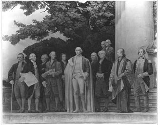 | Keywords: nara:arcid=7820686 u.s. national archives usnationalarchives national archives building nationalarchivesbuilding blackandwhite monochrome black and white Original Caption: Photograph of the Center Section of the Mural, The Constitution, by Barry Faulkner, 10/27/1936 U.S. National Archives’ Local Identifier: 64-NA-118 Scope and Content Note:In this detail of the Barry Faulkner mural, The Constitution, the figures pictured from left to right in the front row are: Charles Pinckney, James Madison, Elbridge Gerry, William Samuel Johnson, George Mason, George Washington, Benjamin Franklin, Rufus King, William Paterson, and Charles Cotesworth Pinckney. Pictured left to right back row: William R. Davie, and John Langdon. From: Series : Historic Photograph File of National Archives Events and Personnel, compiled 1935 - 1975, documenting the period ca. 1928 - 1975 Created By: General Services Administration. National Archives and Records Service. Office of Educational Programs. Education Division. (? - 04/01/1985) Production Date: 10/27/1936 Persistent URL: research.archives.gov/description/7820686 Repository: National Archives at College Park - Still Pictures (RD-DC-S), National Archives at College Park For information about ordering reproductions of photographs held by the Still Picture Unit, visit: www.archives.gov/research/order/still-pictures.html Reproductions may be ordered via an independent vendor. NARA maintains a list of vendors at www.archives.gov/research/order/vendors-photos-maps-dc.html Original Caption: Photograph of the Center Section of the Mural, The Constitution, by Barry Faulkner, 10/27/1936 U.S. National Archives’ Local Identifier: 64-NA-118 Scope and Content Note:In this detail of the Barry Faulkner mural, The Constitution, the figures pictured from left to right in the front row are: Charles Pinckney, James Madison, Elbridge Gerry, William Samuel Johnson, George Mason, George Washington, Benjamin Franklin, Rufus King, William Paterson, and Charles Cotesworth Pinckney. Pictured left to right back row: William R. Davie, and John Langdon. From: Series : Historic Photograph File of National Archives Events and Personnel, compiled 1935 - 1975, documenting the period ca. 1928 - 1975 Created By: General Services Administration. National Archives and Records Service. Office of Educational Programs. Education Division. (? - 04/01/1985) Production Date: 10/27/1936 Persistent URL: research.archives.gov/description/7820686 Repository: National Archives at College Park - Still Pictures (RD-DC-S), National Archives at College Park For information about ordering reproductions of photographs held by the Still Picture Unit, visit: www.archives.gov/research/order/still-pictures.html Reproductions may be ordered via an independent vendor. NARA maintains a list of vendors at www.archives.gov/research/order/vendors-photos-maps-dc.html |