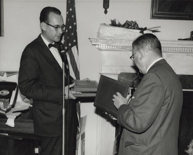 | Keywords: united states national archives personnel unitedstatesnationalarchivespersonnel nara:arcid=3493270 tribute retirement u.s. national archives usnationalarchives b/w bw indoor blackandwhite black and white Original Caption: Dr. James B. Rhoads presents book of tributes to Dr. Grover at his retirement party Archivist's Reception Room, November 5, 1965. U.S. National Archives’ Local Identifier: 64-NA-2807 Persistent URL: catalog.archives.gov/id/3493270 Repository: Still Picture Records Section, Special Media Archives Services Division (NWCS-S), National Archives at College Park, 8601 Adelphi Road, College Park, MD, 20740-6001. For information about ordering reproductions of photographs held by the Still Picture Unit, visit: www.archives.gov/research/order/still-pictures.html Reproductions may be ordered via an independent vendor. NARA maintains a list of vendors at www.archives.gov/research/order/vendors-photos-maps-dc.html Access Restrictions: Unrestricted Use Restrictions: Unrestricted Original Caption: Dr. James B. Rhoads presents book of tributes to Dr. Grover at his retirement party Archivist's Reception Room, November 5, 1965. U.S. National Archives’ Local Identifier: 64-NA-2807 Persistent URL: catalog.archives.gov/id/3493270 Repository: Still Picture Records Section, Special Media Archives Services Division (NWCS-S), National Archives at College Park, 8601 Adelphi Road, College Park, MD, 20740-6001. For information about ordering reproductions of photographs held by the Still Picture Unit, visit: www.archives.gov/research/order/still-pictures.html Reproductions may be ordered via an independent vendor. NARA maintains a list of vendors at www.archives.gov/research/order/vendors-photos-maps-dc.html Access Restrictions: Unrestricted Use Restrictions: Unrestricted |