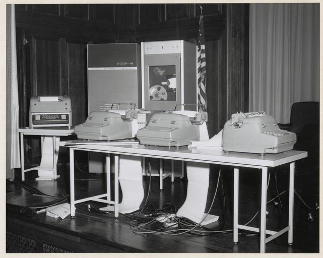 | Keywords: nara 75th anniversary nara75thanniversary united states national archives personnel unitedstatesnationalarchivespersonnel nara:arcid=3493265 digital digital equipment digitalequipment machine u.s. national archives usnationalarchives b/w bw indoor Original Caption: Exhibit of PDP-4 Digital Equipment Corporation machines on the stage of the National Archives auditorium, March 2, 1964. U.S. National Archives’ Local Identifier: 64-NA-2369 Persistent URL: catalog.archives.gov/id/3493265 Repository: Still Picture Records Section, Special Media Archives Services Division (NWCS-S), National Archives at College Park, 8601 Adelphi Road, College Park, MD, 20740-6001. For information about ordering reproductions of photographs held by the Still Picture Unit, visit: www.archives.gov/research/order/still-pictures.html Reproductions may be ordered via an independent vendor. NARA maintains a list of vendors at www.archives.gov/research/order/vendors-photos-maps-dc.html Access Restrictions: Unrestricted Use Restrictions: Unrestricted Original Caption: Exhibit of PDP-4 Digital Equipment Corporation machines on the stage of the National Archives auditorium, March 2, 1964. U.S. National Archives’ Local Identifier: 64-NA-2369 Persistent URL: catalog.archives.gov/id/3493265 Repository: Still Picture Records Section, Special Media Archives Services Division (NWCS-S), National Archives at College Park, 8601 Adelphi Road, College Park, MD, 20740-6001. For information about ordering reproductions of photographs held by the Still Picture Unit, visit: www.archives.gov/research/order/still-pictures.html Reproductions may be ordered via an independent vendor. NARA maintains a list of vendors at www.archives.gov/research/order/vendors-photos-maps-dc.html Access Restrictions: Unrestricted Use Restrictions: Unrestricted |