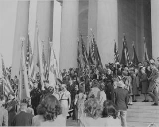 | Keywords: Photograph of flag-bearers and spectators at Jefferson Memorial ceremony marking Jefferson's birthday. - NARA - 199593.tif Scope and content General notes 199593 Local identifier National Archives and Records Administration Office of Presidential Libraries Harry S Truman Library 04/01/1985 - NARA-Author Rowe Abbie 1905-1967 Photographer 8451352 <br /> Harry S Truman Library NLHST 500 West U S Highway 24 Independence MO 64050-1798 1947-04-13 Record group Collection HST-AVC Audiovisual Collection 1957 - 2006 Record group ARC 1207 Photographs Relating to the Administration Family and Personal Life of Harry S Truman compiled 1957 - 2004 documenting the period 1849 - 2004 Series ARC 198606 File unit File unit ARC Variant control numbers NAIL Control Number NLT-AVC-PHT-73 2438 yes Other versions <gallery> File Photograph_of_flag-bearers_and_spectators_at_Jefferson_Memorial_ceremony_marking_Jefferson's_birthday _-_NARA_-_199593 tif tif File Photograph_of_flag-bearers_and_spectators_at_Jefferson_Memorial_ceremony_marking_Jefferson's_birthday _-_NARA_-_199593 jpg jpg </gallery> NARA-cooperation PD-USGov Photographs by Abbie Rowe Black and white photographs NARA TIF images with categorized JPGs |