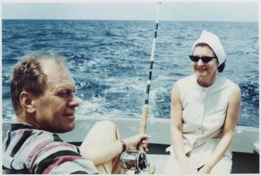 | Keywords: Photograph of Gerald R. Ford and Betty Ford Talking, While Mr. Ford Deep-Sea Fishes During a Vacation Trip Vacation... - NARA - 186972.tif Scope and content This photograph depicts Gerald Ford in foreground talking with Betty Ford who is wearing sunglasses and a scarf on her head The Caribbean Sea is in the background The Fords took a vacation trip to Montego Bay Jamaica following the 1972 General Election General notes 186972 Local identifier GRF-WHPO-H0034 03 President 1974-1977 Ford White House Photographic Office 1974 - 1977 Gerald R Ford Presidential Library http //www fordlibrarymuseum gov/avproj/hseries/1964 asp H0034-3 Institution Gerald R Ford Presidential Library Gerald R Ford Library NLGRF 1000 Beal Avenue Ann Arbor MI 48109-2114 04/1966 Record group Collection GRF-WHPO White House Photographic Office Collection Ford Administration 12/06/1973 - 01/20/1977 Record group ARC 1136 Gerald and Betty Ford Historical Photographs compiled 08/09/1974 - 01/20/1977 documenting the period 1884 - 1974 Series ARC 186757 File unit File unit ARC Variant control numbers NAIL Control Number NLF-WHPO-A-H0034 03 yes Other versions Gerald R Ford Presidential Library and Museum-cooperation PD-USGov Images of Gerald R Ford - Congressional Years - at the Ford library and Museum Gerald Ford before 1974 Angling Betty and Gerald Ford Gerald R Ford Presidential Library and Museum series Gerald and Betty Ford Historical Photographs compiled 08/09/1974 - 01/20/1977 documenting the period 1884 - 1974 1972 in Jamaica |