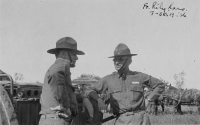 | Keywords: nara:arcid=6233743 u.s. national archives usnationalarchives harry s. truman harrystruman 1926 army reserve camp armyreservecamp kansas blackandwhite monochrome outdoor black and white Original Caption: Photograph of Harry S. Truman at Fort Riley, 07/1926 Created By: National Archives and Records Administration. Office of Presidential Libraries. Harry S. Truman Library. (04/01/1985 - ) From: Series: Photographs Relating to the Administration, Family, and Personal Life of Harry S. Truman, compiled 1957 - 2004, documenting the period 1849 - 2004 Contact: Harry S. Truman Library (NLHST), 500 West U.S. Highway 24, Independence, MO, 64050-1798. PHONE: 816-268-8272; FAX: 816-268-8295; EMAIL:truman.reference@nara.gov. Production Dates: 07/1926 Scope and Content Note: Lieutenant Colonel Harry S. Truman (left) at Army Reserve Camp at Fort Riley, Kansas. He is chatting with Captain Hurd and leaning against military equipment. In the upper right corner of the photo, in Truman's handwriting is "Ft. Kiley, Kans. 7-5 to 19-26." Persistent URL: arcweb.archives.gov/arc/action/ExternalIdSearch?id=6233743 Truman Library URL: www.trumanlibrary.org/photographs/view.php?id=35210&rr= Access Restrictions: Unrestricted Use Restrictions: Unrestricted Original Caption: Photograph of Harry S. Truman at Fort Riley, 07/1926 Created By: National Archives and Records Administration. Office of Presidential Libraries. Harry S. Truman Library. (04/01/1985 - ) From: Series: Photographs Relating to the Administration, Family, and Personal Life of Harry S. Truman, compiled 1957 - 2004, documenting the period 1849 - 2004 Contact: Harry S. Truman Library (NLHST), 500 West U.S. Highway 24, Independence, MO, 64050-1798. PHONE: 816-268-8272; FAX: 816-268-8295; EMAIL:truman.reference@nara.gov. Production Dates: 07/1926 Scope and Content Note: Lieutenant Colonel Harry S. Truman (left) at Army Reserve Camp at Fort Riley, Kansas. He is chatting with Captain Hurd and leaning against military equipment. In the upper right corner of the photo, in Truman's handwriting is "Ft. Kiley, Kans. 7-5 to 19-26." Persistent URL: arcweb.archives.gov/arc/action/ExternalIdSearch?id=6233743 Truman Library URL: www.trumanlibrary.org/photographs/view.php?id=35210&rr= Access Restrictions: Unrestricted Use Restrictions: Unrestricted |