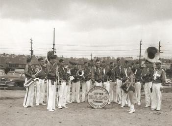 | Keywords: smithsonian institution smithsonianinstitution band music 1950s seattle marching washington postal workers letter carriers mail drum uniform brass majorette malc national association of letter carriers' (nalc) band nationalassociationoflettercarriersnalcband early band camp earlybandcamp tuba branch 78 branch78 group national postal museum nationalpostalmuseum outdoor monochrome Date: c. 1952 Object number: A.2009-43 Medium: paper; photo-emulsion Description: Unidentified members of the National Association of Letter Carriers' (NALC) band pose for a group photograph. As noted on the drum in the center of the photograph, these carriers belonged to Seattle, Washington's Branch 79 of the NALC. The US postal system has a long history of employees forming sports teams, bands, and choirs, the first of which began forming in the late nineteenth century. National Postal Museum, Curatorial Photographic Collection Photographer: Unknown Place: United States of America      Washington See more items in: National Postal Museum Collection Credit line: National Postal Museum, Curatorial Photographic Collection Photographer: Unknown Persistent URL:http://www.arago.si.edu/index.asp?con=2&cmd=1&id=207607 Repository:National Postal Museum View more collections from the Smithsonian Institution. Date: c. 1952 Object number: A.2009-43 Medium: paper; photo-emulsion Description: Unidentified members of the National Association of Letter Carriers' (NALC) band pose for a group photograph. As noted on the drum in the center of the photograph, these carriers belonged to Seattle, Washington's Branch 79 of the NALC. The US postal system has a long history of employees forming sports teams, bands, and choirs, the first of which began forming in the late nineteenth century. National Postal Museum, Curatorial Photographic Collection Photographer: Unknown Place: United States of America Washington See more items in: National Postal Museum Collection Credit line: National Postal Museum, Curatorial Photographic Collection Photographer: Unknown Persistent URL:http://www.arago.si.edu/index.asp?con=2&cmd=1&id=207607 Repository:National Postal Museum View more collections from the Smithsonian Institution. |