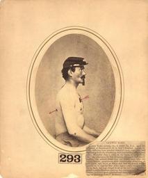 | Keywords: Photograph of Ludwig Kohn..JPG en Man in profile seated shirtless and wearing a military cap;red ink showing the path of the bullet 2013-09-27 09 07 41 Courtesy of the National Library of Medicine Images from the History of Medicine IHM http //ihm nlm nih gov/images/B030324 Also showcased in the book Hidden Treasure New York NY Blast Books 2012 p 183 HMD Prints Photos call number PP059703 no 293 alb Bontecou Reed B Reed Brockway 1824-1907 photographer Custom license marker 2013 09 27 PD-USGov Uploaded with UploadWizard Wounds Gunshot wounds Military people in the 19th century American Civil War medicine Medical photography |