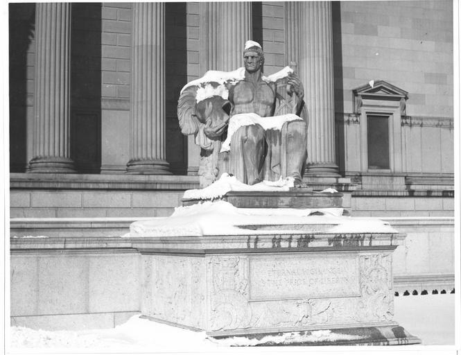 | Keywords: nara:arcid=7820561 u.s. national archives usnationalarchives national archives building nationalarchivesbuilding blackandwhite monochrome black and white Original Caption: Photograph of the Male Statue, Eternal Vigilance, in the Snow near the Pennsylvania Entrance to the National Archives Building, 01/04/1936 U.S. National Archives’ Local Identifier: 64-NA-53 From: Series : Historic Photograph File of National Archives Events and Personnel, compiled 1935 - 1975, documenting the period ca. 1928 - 1975 Created By: General Services Administration. National Archives and Records Service. Office of Educational Programs. Education Division. (? - 04/01/1985) Production Date: 01/04/1936 Persistent URL: research.archives.gov/description/7820561 Repository: National Archives at College Park - Still Pictures (RD-DC-S), National Archives at College Park For information about ordering reproductions of photographs held by the Still Picture Unit, visit: www.archives.gov/research/order/still-pictures.html Reproductions may be ordered via an independent vendor. NARA maintains a list of vendors at www.archives.gov/research/order/vendors-photos-maps-dc.html Original Caption: Photograph of the Male Statue, Eternal Vigilance, in the Snow near the Pennsylvania Entrance to the National Archives Building, 01/04/1936 U.S. National Archives’ Local Identifier: 64-NA-53 From: Series : Historic Photograph File of National Archives Events and Personnel, compiled 1935 - 1975, documenting the period ca. 1928 - 1975 Created By: General Services Administration. National Archives and Records Service. Office of Educational Programs. Education Division. (? - 04/01/1985) Production Date: 01/04/1936 Persistent URL: research.archives.gov/description/7820561 Repository: National Archives at College Park - Still Pictures (RD-DC-S), National Archives at College Park For information about ordering reproductions of photographs held by the Still Picture Unit, visit: www.archives.gov/research/order/still-pictures.html Reproductions may be ordered via an independent vendor. NARA maintains a list of vendors at www.archives.gov/research/order/vendors-photos-maps-dc.html |