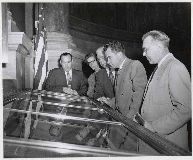 Keywords: nara 75th anniversary nara75thanniversary united states national archives personnel unitedstatesnationalarchivespersonnel nara:arcid=3493224 nixon vice president nixon vicepresidentnixon ceremony u.s. national archives usnationalarchives b/w bw blackandwhite black and white Original Caption: Presentation Ceremonies - Looking at the Shrine Dr. Bahmer, V.P. Nixon, Sen. Bricker, Mr. Gear, and Mr. Mosler, June 29, 1954. U.S. National Archives’ Local Identifier: 64-NA-1-860 Persistent URL: catalog.archives.gov/id/3493224 Repository: Still Picture Records Section, Special Media Archives Services Division (NWCS-S), National Archives at College Park, 8601 Adelphi Road, College Park, MD, 20740-6001. For information about ordering reproductions of photographs held by the Still Picture Unit, visit: www.archives.gov/research/order/still-pictures.html Reproductions may be ordered via an independent vendor. NARA maintains a list of vendors at www.archives.gov/research/order/vendors-photos-maps-dc.html Access Restrictions: Unrestricted Use Restrictions: Unrestricted Original Caption: Presentation Ceremonies - Looking at the Shrine Dr. Bahmer, V.P. Nixon, Sen. Bricker, Mr. Gear, and Mr. Mosler, June 29, 1954. U.S. National Archives’ Local Identifier: 64-NA-1-860 Persistent URL: catalog.archives.gov/id/3493224 Repository: Still Picture Records Section, Special Media Archives Services Division (NWCS-S), National Archives at College Park, 8601 Adelphi Road, College Park, MD, 20740-6001. For information about ordering reproductions of photographs held by the Still Picture Unit, visit: www.archives.gov/research/order/still-pictures.html Reproductions may be ordered via an independent vendor. NARA maintains a list of vendors at www.archives.gov/research/order/vendors-photos-maps-dc.html Access Restrictions: Unrestricted Use Restrictions: Unrestricted |