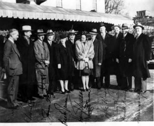 Keywords: nara:arcid=6233758 u.s. national archives usnationalarchives harry s. truman library harrystrumanlibrary harry s. truman harrystruman bess wallace besswallace the cabinet thecabinet 1947 state of the union stateoftheunion blackandwhite monochrome outdoor black and white Original Caption: Photograph of President Harry S. Truman with Cabinet and Family Leaving the Capitol, 01/06/1947 Created By: National Archives and Records Administration. Office of Presidential Libraries. Harry S. Truman Library. (04/01/1985 - ) From: Series: Photographs Relating to the Administration, Family, and Personal Life of Harry S. Truman, compiled 1957 - 2004, documenting the period 1849 - 2004 Contact: Harry S. Truman Library (NLHST), 500 West U.S. Highway 24, Independence, MO, 64050-1798. PHONE: 816-268-8272; FAX: 816-268-8295; EMAIL:truman.reference@nara.gov. Production Dates: 01/06/1947 Scope and Content Note: From left to right, Secretary of the Navy James Forrestal, Attorney General Tom Clark, Secretary of War Robert Patterson, Secretary of State James Byrnes, First Lady Bess Wallace Truman, President Harry S. Truman, Margaret Truman, Secretary of the Treasury John Snyder, Secretary of the Interior Julius Krug, Secretary of Agriculture Clinton Anderson, Secretary of Commerce Averell Harriman, and Secretary of Labor Lewis B. Schwellenbach. They are leaving for the Capitol for President Truman to make his State of the Union speech to Congress. The photo is autographed by each person in the photo. Persistent URL: arcweb.archives.gov/arc/action/ExternalIdSearch?id=6233758 Truman Library URL: www.trumanlibrary.org/photographs/view.php?id=13698&rr= Access Restrictions: Unrestricted Use Restrictions: Unrestricted Original Caption: Photograph of President Harry S. Truman with Cabinet and Family Leaving the Capitol, 01/06/1947 Created By: National Archives and Records Administration. Office of Presidential Libraries. Harry S. Truman Library. (04/01/1985 - ) From: Series: Photographs Relating to the Administration, Family, and Personal Life of Harry S. Truman, compiled 1957 - 2004, documenting the period 1849 - 2004 Contact: Harry S. Truman Library (NLHST), 500 West U.S. Highway 24, Independence, MO, 64050-1798. PHONE: 816-268-8272; FAX: 816-268-8295; EMAIL:truman.reference@nara.gov. Production Dates: 01/06/1947 Scope and Content Note: From left to right, Secretary of the Navy James Forrestal, Attorney General Tom Clark, Secretary of War Robert Patterson, Secretary of State James Byrnes, First Lady Bess Wallace Truman, President Harry S. Truman, Margaret Truman, Secretary of the Treasury John Snyder, Secretary of the Interior Julius Krug, Secretary of Agriculture Clinton Anderson, Secretary of Commerce Averell Harriman, and Secretary of Labor Lewis B. Schwellenbach. They are leaving for the Capitol for President Truman to make his State of the Union speech to Congress. The photo is autographed by each person in the photo. Persistent URL: arcweb.archives.gov/arc/action/ExternalIdSearch?id=6233758 Truman Library URL: www.trumanlibrary.org/photographs/view.php?id=13698&rr= Access Restrictions: Unrestricted Use Restrictions: Unrestricted