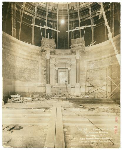 | Keywords: u.s. national archives usnationalarchives nara:arcid=7368455 building construction nara rotunda 1934 11/03/1934 11031934 archives john russell pope johnrussellpope george a. fuller co. georgeafullerco washington d.c. washingtondc national archives building nationalarchivesbuilding Original Caption: Photograph of the Rotunda of the National Archives Building Being Constructed, 11/03/1934 U.S. National Archives’ Local Identifier: 121-BCP-111C-95 From: Construction of Federal Buildings, compiled 1885 - 1954 Created By: General Services Administration. Public Buildings Service.(12/11/1949 - ) Production Date: 11/03/1934 Persistent URL: research.archives.gov/description/7368455 Repository: National Archives at College Park - Still Pictures (RD-DC-S) For information about ordering reproductions of photographs held by the Still Picture Unit, visit: www.archives.gov/research/order/still-pictures.html Reproductions may be ordered via an independent vendor. NARA maintains a list of vendors at www.archives.gov/research/order/vendors-photos-maps-dc.html Original Caption: Photograph of the Rotunda of the National Archives Building Being Constructed, 11/03/1934 U.S. National Archives’ Local Identifier: 121-BCP-111C-95 From: Construction of Federal Buildings, compiled 1885 - 1954 Created By: General Services Administration. Public Buildings Service.(12/11/1949 - ) Production Date: 11/03/1934 Persistent URL: research.archives.gov/description/7368455 Repository: National Archives at College Park - Still Pictures (RD-DC-S) For information about ordering reproductions of photographs held by the Still Picture Unit, visit: www.archives.gov/research/order/still-pictures.html Reproductions may be ordered via an independent vendor. NARA maintains a list of vendors at www.archives.gov/research/order/vendors-photos-maps-dc.html |