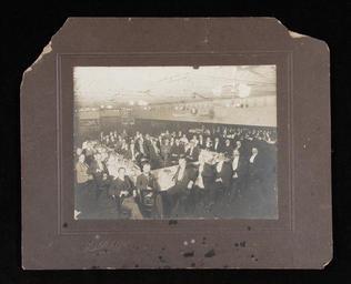 | Keywords: darling harbour darlingharbour new south wales newsouthwales australia william j hall collection williamjhallcollection hall & co. hallco sydney rowing club sydneyrowingclub text photo border This photo is part of the Australian National Maritime Museum’s William J Hall collection. The mounted photograph was taken by Hall & Co. depicts a Sydney Rowing Club dinner. The dinner was held at the ABC rooms on 14 December 1907. Sydney Rowing Club is the oldest Rowing Club in New South Wales and was founded in 1870. It was originally situated at East Circular Quay but heavy water traffic necessitated a move to Woolloomooloo in 1889 and then to Abbotsford on the Parramatta River. Australia first sent rowers to Stockholm 1912. The eight won the Grand Challenge Cup at the Henley Regatta en route to Sweden. A change of personnel between Henley and Stockholm resulted in the crew losing some form and it missed a medal, whilst the Leander crew, which finished second at Henley, won the gold medal for Great Britain. The ANMM undertakes research and accepts public comments that enhance the information we hold about images in our collection. This record has been updated accordingly. Object no. ANMS1288[011] This photo is part of the Australian National Maritime Museum’s William J Hall collection. The mounted photograph was taken by Hall & Co. depicts a Sydney Rowing Club dinner. The dinner was held at the ABC rooms on 14 December 1907. Sydney Rowing Club is the oldest Rowing Club in New South Wales and was founded in 1870. It was originally situated at East Circular Quay but heavy water traffic necessitated a move to Woolloomooloo in 1889 and then to Abbotsford on the Parramatta River. Australia first sent rowers to Stockholm 1912. The eight won the Grand Challenge Cup at the Henley Regatta en route to Sweden. A change of personnel between Henley and Stockholm resulted in the crew losing some form and it missed a medal, whilst the Leander crew, which finished second at Henley, won the gold medal for Great Britain. The ANMM undertakes research and accepts public comments that enhance the information we hold about images in our collection. This record has been updated accordingly. Object no. ANMS1288[011] |