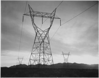 | Keywords: Photograph of Transmission Lines in Mojave Desert Leading from Boulder Dam, 1941 - NARA - 519839.jpg Mojave Desert Leading from Boulder Dam 1941 519839 Local identifier 79-AAB-03 Department of the Interior National Park Service Branch of Still and Motion Pictures - NARA-Author Adams Ansel 1902-1984 Photographer 1332556 <br /> Still Picture Records Section Special Media Archives Services Division NWCS-S National Archives at College Park 8601 Adelphi Road College Park MD 20740-6001 1941 Record group Record Group 79 Records of the National Park Service 1785 - 2006 Record group ARC 408 Ansel Adams Photographs of National Parks and Monuments compiled 1941 - 1942 documenting the period ca 1933 - 1942 Series ARC 519830 Variant control numbers NAIL Control Number NWDNS-79-AA-B03 General notes NARA image of San Bernardino County California Scope and content Original caption Transmission lines in Mojave Desert 1941 File unit File unit ARC <gallery> File Photograph_of_Transmission_Lines_in_Mojave_Desert_Leading_from_Boulder_Dam _1941_-_NARA_-_519839 tif tif File Photograph_of_Transmission_Lines_in_Mojave_Desert_Leading_from_Boulder_Dam _1941_-_NARA_-_519839 jpg jpg </gallery> NARA-cooperation PD-USGov Hoover Dam as photographed by Ansel Adams Power lines in California Pylons in the United States Mojave_Desert 1941 in California NARA images of San Bernardino County California Black and white photographs of structures Black and white photographs of California |