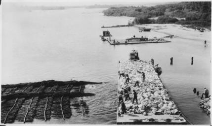 | Keywords: Photograph with caption "Rock and brush protection mattress, L-D No. 8...Start of sinking 50 ft. mat below tainter... - NARA - 282413.jpg Scope and content General notes 282413 Local identifier War Department Office of the Chief of Engineers St Paul District 1866 - 09/18/1947 NARA's Great Lakes Region Chicago NRDA 7358 South Pulaski Road Chicago IL 60629-5898 1940-09-14 Record group Record Group 77 Records of the Office of the Chief of Engineers 1789 - 1999 Record group ARC 406 Operations and Maintenance Files Relating to Lock and Dam Numbers 3-10 of the Mississippi River Nine Foot Channel Project compiled 1931 - 1943 Series ARC 282367 File unit 813a 1 Miscellaneous Correspondence ca 1931 - ca 1943 File unit ARC 282409 Variant control numbers NAIL Control Number NRDC-77-SLD3-813A 1 -GOF4 Other versions <gallery> File Photograph_with_caption_ Rock_and_brush_protection_mattress _L-D_No _8 Start_of_sinking_50_ft _mat_below_tainter _-_NARA_-_282413 tif tif File Photograph_with_caption_ Rock_and_brush_protection_mattress _L-D_No _8 Start_of_sinking_50_ft _mat_below_tainter _-_NARA_-_282413 jpg jpg </gallery> NARA-cooperation PD-USGov Mississippi River Lock and Dam number 8 |