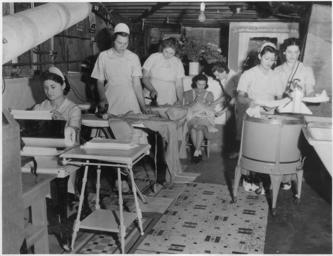 | Keywords: Photograph, WP 10688, OP^665 08 3 169, Household Workers Training Project, San Jose, California (Laundry). (7 persons) - NARA - 296102.tif Scope and content General notes 296102 Local identifier Work Projects Administration Northern California Office Division of Professional Service Projects 1936 - 1942 NARA's Pacific Region San Bruno NRHAS 1000 Commodore Drive San Bruno CA 94066-2350 ca date 1940 05 20 Record group Record Group 69 Records of the Work Projects Administration 1922 - 1944 Record group ARC 398 This Work Pays Your Community Week Scrapbook 1940; Souveniers Part II of II compiled 05/20/1940 - 05/25/1940 Series ARC 296089 File unit Selected photographs from This Work Pays Your Community Week Scrapbook 1940; Souveniers Part II of II 05/20/1940 - 05/25/1940 File unit ARC 296090 Variant control numbers NAIL Control Number NRHS-69-NCWPC-SBP-12HOUSEWKLAUND2 yes Other versions <gallery> File Photograph _WP_10688 _OP 665_08_3_169 _Household_Workers_Training_Project _San_Jose _California_ Laundry _ 7_persons _-_NARA_-_296102 tif tif File Photograph _WP_10688 _OP 665_08_3_169 _Household_Workers_Training_Project _San_Jose _California_ Laundry _ 7_persons _-_NARA_-_296102 jpg jpg </gallery> NARA-cooperation PD-USGov People of the United States in 1940 1940 in education Maids in the United States Laundry People of San Jose California Ironing 1940 in California Domestic workers in 1940 May 1940 in the United States NARA TIF images with categorized JPGs Black and white photographs |