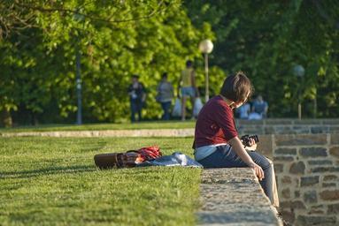 Keywords: photographer girl woman person sitting waiting resting photography photos images pictures