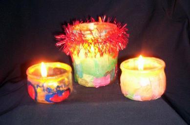 Keywords: Photophores.jpg Child activity / Activités pour enfants photophores 2005-11-27 own assumed Sand~commonswiki Tea light holders Child activity