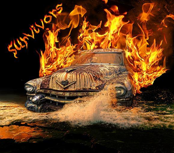 Keywords: photoshop car water waves fire flames old old car night