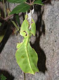 Keywords: Phyllium giganteum - female larva at exuvia.JPG Phyllium giganteum - female larva at an exuvia own 2007-12-15 Drägüs Phyllium giganteum Exuvia