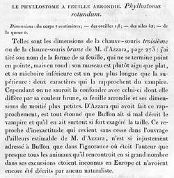 | Keywords: Phyllostoma rotundum É. Geoffroy, 1810 protolog.jpg des roussettes et des céphalotes deux nouveaux genres de la famille des chauve-souris Annales du Muséum National d'Histoire Naturelle vol 15 Ž 1810 p 86-108 1810 creator Étienne Geoffroy Saint-Hilaire PD-old Desmodus rotundus |