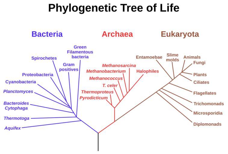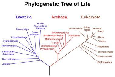 | Keywords: Phylogenetic tree.svg A phylogenetic tree of living things based on RNA data and proposed by Carl Woese showing the separation of bacteria archaea and eukaryotes Trees constructed with other genes are generally similar although they may place some early-branching groups very differently thanks to long branch attraction The exact relationships of the three domains are still being debated as is the position of the root of the tree It has also been suggested that due to lateral gene transfer a tree may not be the best representation of the genetic relationships of all organisms For instance some genetic evidence suggests that eukaryotes evolved from the union of some bacteria and archaea one becoming an organelle and the other the main cell Arbre phylogénétique hypothétique de tous les organismes vivants L'arbre est basé sur des séquences de l'ARNr 16S l'origine proposé par Carl Woese il montre l'histoire évolutive des trois domaines du vivant bactéries archaea et eucaryotes Albero filogenetico dei viventi Basato sulle sequenze di Rna 16s è stato originariamente proposto da Carl Woese e mostra la divisione dei tre domini degli organismi Archea Bacteria e Eukarya Alberi costruiti su altre sequenze geniche sono generalmente molto simili nonostante possano riposizionare differentemente alcuni dei gruppi più antichi L'esatta relazione fra i tre domini è ancora oggetto di dibattito così come la posizione della radice dell'albero è stato inoltre suggerito che a causa dei trasferimenti laterali dei geni un albero potrebbe non essere la migliore rappresentazione delle relazioni di tutti gli organismi Per esempio alcune prove genetiche portano a credere che gli eucarioti si sarebbero evoluti dall'unione fra alcuni batteri e archibatteri endosimbiosi 这是 棵基于RNA资料的和由卡尔· 斯提出的生命系统发生树 这棵发生树分为三个分支:细菌 古菌和 核生物 虽然由其他基因构成的发生树对于早 分支的分类很不相同,但是由于长分 吸引,使得他们大体上是相同的 按照树根现 的位置,三域的确切关系还 辩论当中 曾经 人建议,因为横向基因转移, 棵发生树 必能 好体现 生物体的基因关系 例如, 些遗传学的证据表明, 核细胞是进化自 些细菌和古菌( 种 为细胞器,另 种 为细胞主体)的结合体 https //astrobiology nasa gov/nai NASA Astrobiology Institute found in http //nai arc nasa gov/news_stories/news_detail cfm ID 274 an article 2006-09 This vector version Eric Gaba Sting - fr Sting Public domain Other versions/Phylogenetic tree translation possible Atelier graphique fr French Wikipedia Sting Phylogenetic tree of life English Most recent common ancestor Last universal ancestor |