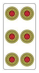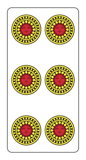 | Keywords: Piacentine-D6.svg 6 di denari delle carte da gioco piacentine Modiano Created with Inkscape self-made based on Image Piacentine deck jpg F l a n k e r PD-old Piacenza deck SVG playing cards Piacentine denari 06 Individual playing cards Piacentine denari 06 6 of Coins |