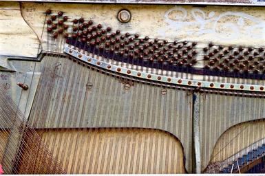 Keywords: piano inside instrument musical music wires internal deteriorated dilapidated grungy vintage