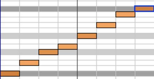 Keywords: PianoRoll.png de Darstellung der C-Dur Tonleiter in der PianoRoll Die Halbtonschritte sind klar erkennbar 2015-03-15 b de Datei PianoRoll png b de Benutzer Isengaara other versions cc-zero Uploaded with UploadWizard Musical scales