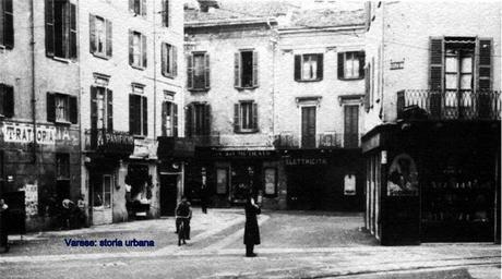 | Keywords: Piazza Carducci e corso Vittorio Emanuele II (ora Matteotti) a destra. L'edificio con l'immagine pubblicitaria della Suchard è stato abbattuto alla fine degli anni '60 e sostituito da una casa con portici che ospitava la drogheria Bianchi. varese corsovittorioemanueleii corsogiacomomatteotti |