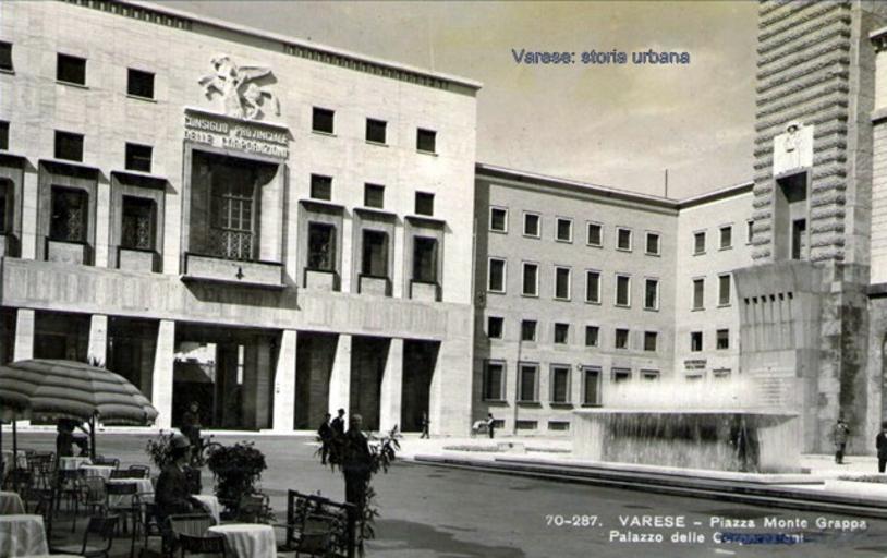 | Keywords: varese piazza monte grappa piazzamontegrappa architecture building Il lato settentrionale della piazza Monte Grappa ultimato da poco. Si vede il palazzo del Consiglio Provinciale delle Corporazioni (ultimato nel 1938, progetto ing. Mario Loreti), ora sede della Camera del Commercio. Si notano alla base della torre littoria (ora civica) le iscrizioni cancellate con la caduta del regime fascista. Il lato settentrionale della piazza Monte Grappa ultimato da poco. Si vede il palazzo del Consiglio Provinciale delle Corporazioni (ultimato nel 1938, progetto ing. Mario Loreti), ora sede della Camera del Commercio. Si notano alla base della torre littoria (ora civica) le iscrizioni cancellate con la caduta del regime fascista. |