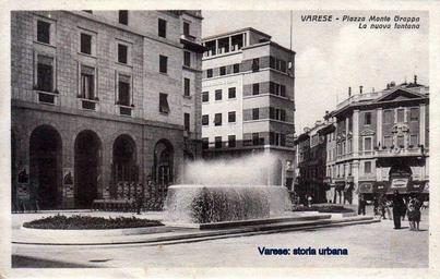 Keywords: La nuova fontana di piazza Monte Grappa. A destra l'imbocco di corso Vittorio Emanuele II (ora Matteotti) e palazzo Mascardi/Pini (ing. Camillo Lucchina, 1929). varese piazzamontegrappa
