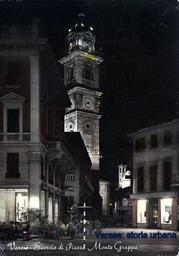 Keywords: Visione notturna di via Marconi. A sinistra palazzo Mascardi/Pini (ing. Camillo Lucchina, 1929), l'edificio a destra con le vetrine illuminate verrà abbattuto nel 1960. varese piazzamontegrappa