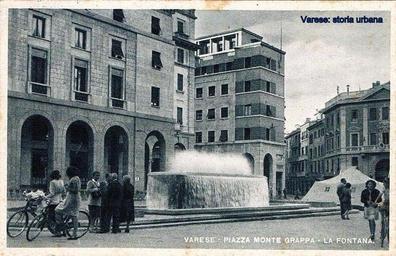 Keywords: La fontana di piazza Monte Grappa. A destra l'imbocco di corso Vittorio Emanuele II (ora Matteotti) e palazzo Mascardi/Pini (ing. Camillo Lucchina, 1929). varese piazzamontegrappa