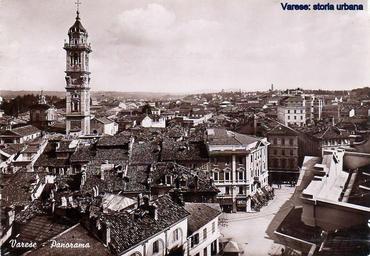 | Keywords: varese piazza monte grappa piazzamontegrappa outdoor skyline Immagine di piazza Monte Grappa prima poco prima degli sventramenti. A destra la cortina di edifici della via Roma (ora Aldo Moro) progettati nel 1889 dall'ing. Paolo Cantù è ancora intatta ma già incombe la poderosa mole di palazzo Sciarini (1930-33 arch. Aldo Scala e ing. Antonino Mazzoni). Sulla piazza c'è il nuovissimo palazzo Mascardi/Pini (ing. Camillo Lucchina, 1929), a sinistra le case di via Verbano (ora Marcobi) sono ancora in piedi. In lontananza si intravede la collina di Giubiano con il campanile della parrocchiale di Sant'Ambrogio. Immagine di piazza Monte Grappa prima poco prima degli sventramenti. A destra la cortina di edifici della via Roma (ora Aldo Moro) progettati nel 1889 dall'ing. Paolo Cantù è ancora intatta ma già incombe la poderosa mole di palazzo Sciarini (1930-33 arch. Aldo Scala e ing. Antonino Mazzoni). Sulla piazza c'è il nuovissimo palazzo Mascardi/Pini (ing. Camillo Lucchina, 1929), a sinistra le case di via Verbano (ora Marcobi) sono ancora in piedi. In lontananza si intravede la collina di Giubiano con il campanile della parrocchiale di Sant'Ambrogio. |