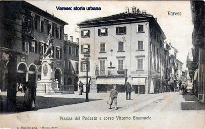 | Keywords: Piazza del Podestà (aperta nel 1583-87) con al centro la copia in bronzo (1901) del monumento ai Cacciatori delle Alpi (noto come "il Garibaldino") opera di Luigi Buzzi Leone (originale in pietra del 1861) dietro il quale si scorge il palazzo dei Biumi (1590). varese corsovittorioemanueleii corsogiacomomatteotti |