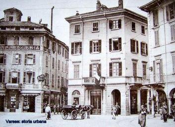 | Keywords: Al centro casa Cova (demolita per fare spazio al palazzo R.A.S., ing. Mario Loreti) sulla sinistra via Verbano (ora Marcobi) con l'edificio ad angolo abbattuto nel 1928 per edificare palazzo Verga (ing. Mario Cantù), sulla destra corso Vittorio Emanuele II (ora corso Matteotti) con la casa porticata sostituita nel 1929 da palazzo Mascardi/Pini (ing. Camillo Lucchina). varese piazzamontegrappa piazzaporcari | ||||