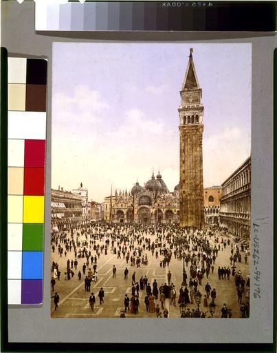 | Keywords: Piazza of San Marco, Venice, Italy WDL412.png Artwork ru Пьяцца Сан- а ко Венеция Италия fr Place Saint-Marc Venise Italie en Piazza of San Marco Venice Italy zh 马可广 ,威尼斯,意大利 pt Piazza de San Marco Veneza Itália ar ميدان سان ماركو، البندقية، ايطاليا ru а этом цветном фотоснимке изоб ажена главная площадь Венеции как она выглядела в последнее десятилетие XIX века В <i> Ту истическом путеводителе по Италии 1895 г издательства фи мы Бедеке </i> площадь Сан- а ко оха акте изована как величайшая достоп имечательность Венеции Здесь соби аются все кто желает насладиться свежим воздухом в летние вече а Сцена особенно оживает когда иг ает военный о кест П и лунном свете площадь п оизводит неизгладимое впечатление Пожалуй во всей Ев опе нет более оча овательного места чем эта ог омная гостиная под отк ытым небом Базилика Сан- а ко в конце площади п едставляет собой византийское соо ужение воздвигнутое около 1050 г неизвестным а хитекто ом Утве ждается что именно здесь х анятся мощи святого а ка пе енесенные в Венецию из Александ ии в 829 г г уппой венецианцев Кампанила или колокольня высотой 98 6 мет ов была пост оена в 1514 году В 1902 г спустя всего несколько лет после того как была сделана эта фотог афия колокольня об ушилась но была восстановлена в 1912 году <br>Це кви; Площади fr Cette impression photochrome montre la place principale de Venise telle qu'elle apparaissait dans la dernière décennie du 19ème siècle L'ouvrage de Baedeker <i>Italie Manuel pour Voyageurs</i> 1895 caractérisait la place Saint - Marc comme le grand pôle d'attraction à Venise Lors des soirées d'été tous ceux qui ont envie de profiter de l'air frais se rassemblent ici La scène est des plus animées lorsque la formation militaire se met à jouer Au clair de lune la place est impressionante En effet il n'existe sans doute pas de place plus fascinante en Europe que ce grand salon à ciel ouvert La Basilique Saint Marc vue a l'extrémité de la place est une structure byzantine qui fut achevée vers 1050 par un architecte inconnu Elle contiendrait les ossements de Saint-Marc qui furent transportées à Venise depuis Alexandrie par les Vénitiens en 829 Le campanile ou clocher de 98 6 mètres fut achevé en 1514 Quelques années après que cette photographie fut prise en 1902 la tour s'effondra mais fut reconstruite en 1912 <br>Églises; Places en This photochrome print shows the main square of Venice as it appeared in the last decade of the 19th century Baedeker s <i>Italy Handbook for Travellers</i> 1895 characterized the Piazza of St Mark as the grand focus of attraction at Venice On summer-evenings all who desire to enjoy the fresh air congregate here The scene is liveliest when the military band plays By moonlight the piazza is strikingly impressive Indeed there is perhaps no more fascinating spot in Europe than this huge open-air drawing room St Mark s Basilica seen at the end of the square is a Byzantine structure that was completed around 1050 by an unknown architect It is said to contain the bones of Saint Mark which were brought to Venice from Alexandria by the Venetians in 829 The 98 6-meter campanile or bell tower was completed in 1514 A few years after this photograph was taken in 1902 the tower collapsed but it was rebuilt in 1912 <br>Churches; Plazas zh 这幅彩色 画显示了 19 世纪 后几十年威尼斯的主要广 德克尔的 <i> 意大利:旅行手册 </i> (1895 年)以 马可广 为特征, 手册中写到 ( 马可广 )是威尼斯 具吸引力的 方, 夏季的 晚, 人都想聚集 这里,享受清新的空气 特别是军事乐团演奏时,现 十分活跃 色 明的 晚,广 更加迷人 事实上,或许欧洲再也找不出 么景点能比这个巨大的 天休息室更加迷人 广 尽头的 马克大教堂呈 占庭式结构,约于1050年建成,建筑师不详 据说教堂内存 马可的尸骨,由威尼斯人 829 年从亚历山大搬回威尼斯 这座 98 6 米高的钟楼或钟塔于 1514 年建成 照片拍摄后几年,即 1902 年这座钟楼 塌,但于 1912 年重建 <br>教堂; 广 pt Esta impressão fotocromática mostra a principal praça de Veneza tal como era no final do século XIX A Itália de <i>Baedeker Manual Para Viajantes</i> 1895 caracterizou a Praça de São Marco como o grande centro de atração em Veneza Em noites de verão todos os que desejam desfrutar do ar fresco se reunem aqui A cena é mais animada quando a banda militar toca Sob o luar a piazza é extremamente impressionante De fato não há talvez nenhum outro lugar mais fascinante na Europa que esta enorme sala de estar ao ar livre A Basílica de São Marcos vista no final da praça é uma estrutura bizantina que foi concluída por volta de 1050 por um arquiteto desconhecido Conta-se que contém os ossos de São Marcos que foram trazidos até Veneza da cidade de Alexandria pelos venezianos em 829 O campanário ou torre do sino de 98 6 metros de altura foi concluído em 1514 Alguns anos depois desta fotografia ser tirada em 1902 a torre desabou mas foi reconstruída em 1912 <br>Igrejas; Praças ar تظهر هذه ا