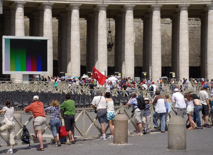 Keywords: Piazza San Pietro Tuerkische Flagge 001.JPG Römisch-katholische Türken auf dem Petersplatz in Rom own Janericloebe 2009-05 Roman Catholics from Turkey People in Saint Peter's Square Colonnades in Saint Peter's Square