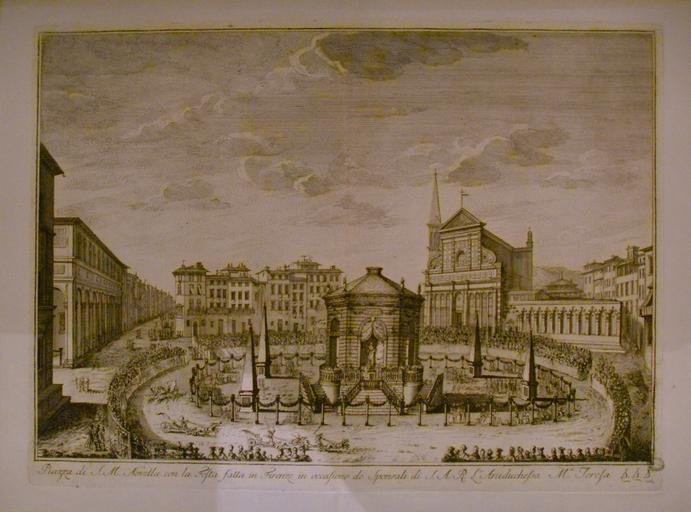 | Keywords: Piazza santa maria novella, sposalizio arciduchessa maria teresa.JPG Piazza Santa Maria Novella a Firenze durante lo sposalizio dell'arciduchessa Maria Teresa XVIII century print PD-old Florence in art Santa Maria Novella Paintings of Piazza Santa Maria Novella |