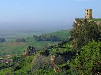 Keywords: Picachocarmona.JPG El Picacho Carmona a la derecha la torre óptica nº 45 de la Línea telegráfica de Andalucía de Mathé Own 2007 miguelrivas carmona es Landscapes of Andalusia Carmona Seville Sierra Morena