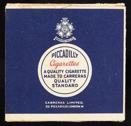 Keywords: Piccadilly cigarettes pack, back.JPG Very old packaging of a product that is not produced and not sold any more own 2014-04-13 10 43 09 Alf van Beem CC-Zero Trademarked Piccadilly cigarettes Cigarette packs