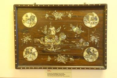 | Keywords: Picture, Nguyen dynasty, 1890, wood with mother of pearl inlay - National Museum of Vietnamese History - Hanoi, Vietnam - DSC05612.JPG en Exhibit in the National Museum of Vietnamese History Hanoi Vietnam Photography was permitted in the museum without restriction This artwork is old enough so that it is in the public domain 2014-08-06 03 29 21 own Daderot other versions cc-zero Mother of pearl inlay in the National Museum of Vietnamese History Uploaded with UploadWizard | ||||