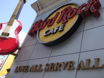 Keywords: PictureLoveAll.jpg en Picture of hard Rock cafe in Dundas Square Toronto Day of Walk for Values original photo J929 2009-05-31 Hard Rock Cafe Toronto