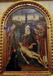 | Keywords: Piedad con San Vicente, San Miguel y un donante, de Juan Núñez. (Catedral de Sevilla).JPG Esta obra que está colocada en la Sacristía de los Cálices de la catedral de Sevilla España fue pintada por Juan Núñez a finales del siglo XV y es la única obra conocida conservada de este autor Finales del siglo XV oil canvas Size cm Catedral de Santa María de la Sede de Sevilla Sacristía de los Cálices de la catedral de Sevilla cite book Luis Martinez Montiel and Alfredo J Morales La catedral de Sevilla 1999 Scala Publishers and Aldeasa S A 857592042 object history exhibition history credit line accession number http //leyendasdesevilla blogspot com es/2015/03/visitando-la-catedral-xxiv-la-sacristia html PD-old-100 Paintings in the Sacristía de los Cálices Catedral de Sevilla Juan Núñez Uploaded with UploadWizard |
